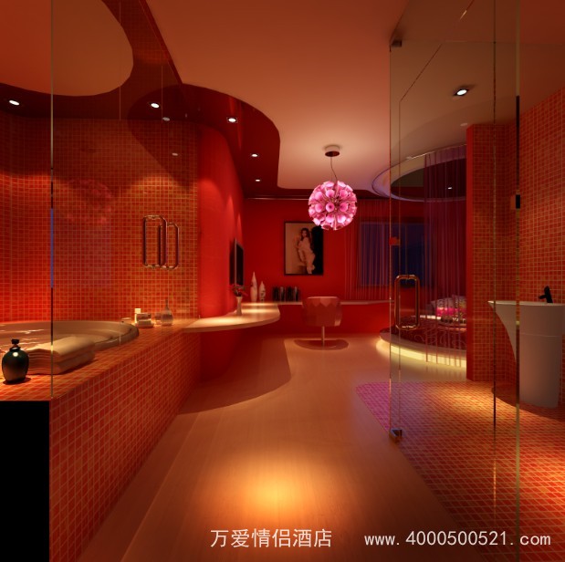 在树林的斜影下,躺在草地上望着漫天的星星,昏暗的灯光中,泡在满是玫瑰花瓣的浴缸里,喝着红酒聊着情话,在满屋环绕着的游鱼中,去感受海底世界的小情趣,遨游太空的奇幻世界中,回味专属于你们两个人的浪漫爱情。爱情不需要理由,爱人却需要理由。万爱,给你一万个爱的理由。能给你和爱人最好的服务和一流的情侣浪漫环境。万爱情侣酒店带给你和爱人最初的感动!在这里让爱延续。