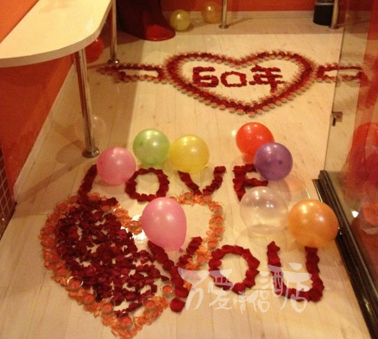 一对耄耋之年的老夫妇,仍然爱的火热,爱的浪漫,在他们结婚60周年的纪念日时,他们的子女提前在万爱情侣酒店预订了一间房间。当他们互相扶持着,打开房门,看到地上用玫瑰花拼写着“60年”、“love you”时,这种跨过半个世纪的真爱,在万爱酒店再次升华。老伴儿之间回忆起曾经酸涩而美好的时光,这是执子之手与子偕老,一生一世的爱恋。做为他们的儿女也给老父母送去了最好的生日礼物,让老父母享受了迟到了50年的浪漫。来万爱,无论是年轻的还是年长的,只要有爱,只要是拥有浪漫情怀,都可以在万爱得到最幸福的浪漫。