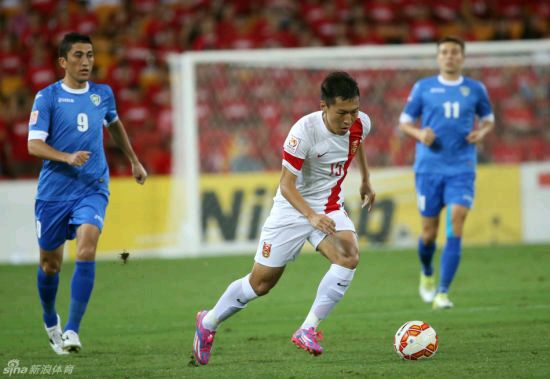 易边后中国队用蒿俊闵换下于海。已有黄牌的穆拉加诺夫在半场结束前又曾出现对郜林大动作犯规的情况,进入下半场乌兹别克将其换下。蒿俊闵出场后带动国足增加了前场传递运转。第49分钟,乌兹别克防线头球解围被蒿俊闵拦截并直接顺入禁区,吴曦小角度攻门被内斯特罗夫没收。乌兹别克防线也有针对性变化——上半场后段姜至鹏数次前插、过人,下半场乌兹别克在其前插时已有夹击安排。